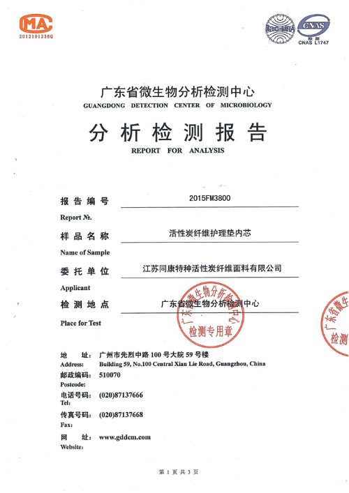 經公司科研人員和全體員工的努力下,我公司成功研發了活性炭纖維護理墊。該產品具有: